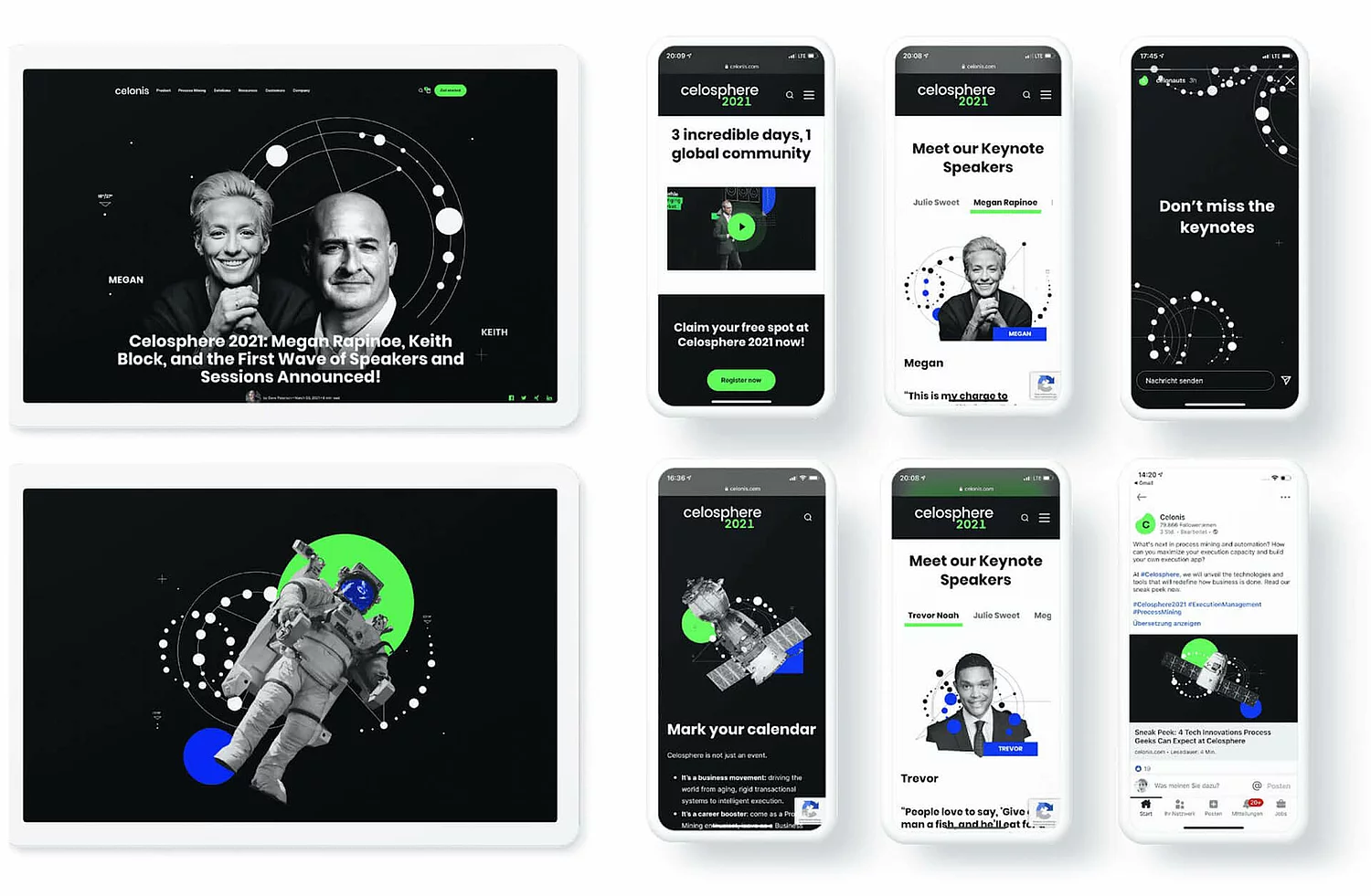 The secondary colors, used discreetly, provide the necessary visual appeal. This interaction creates a unique appearance that emphasizes the pioneering spirit of the brand. Celonis does things differently from the competition - visually too.