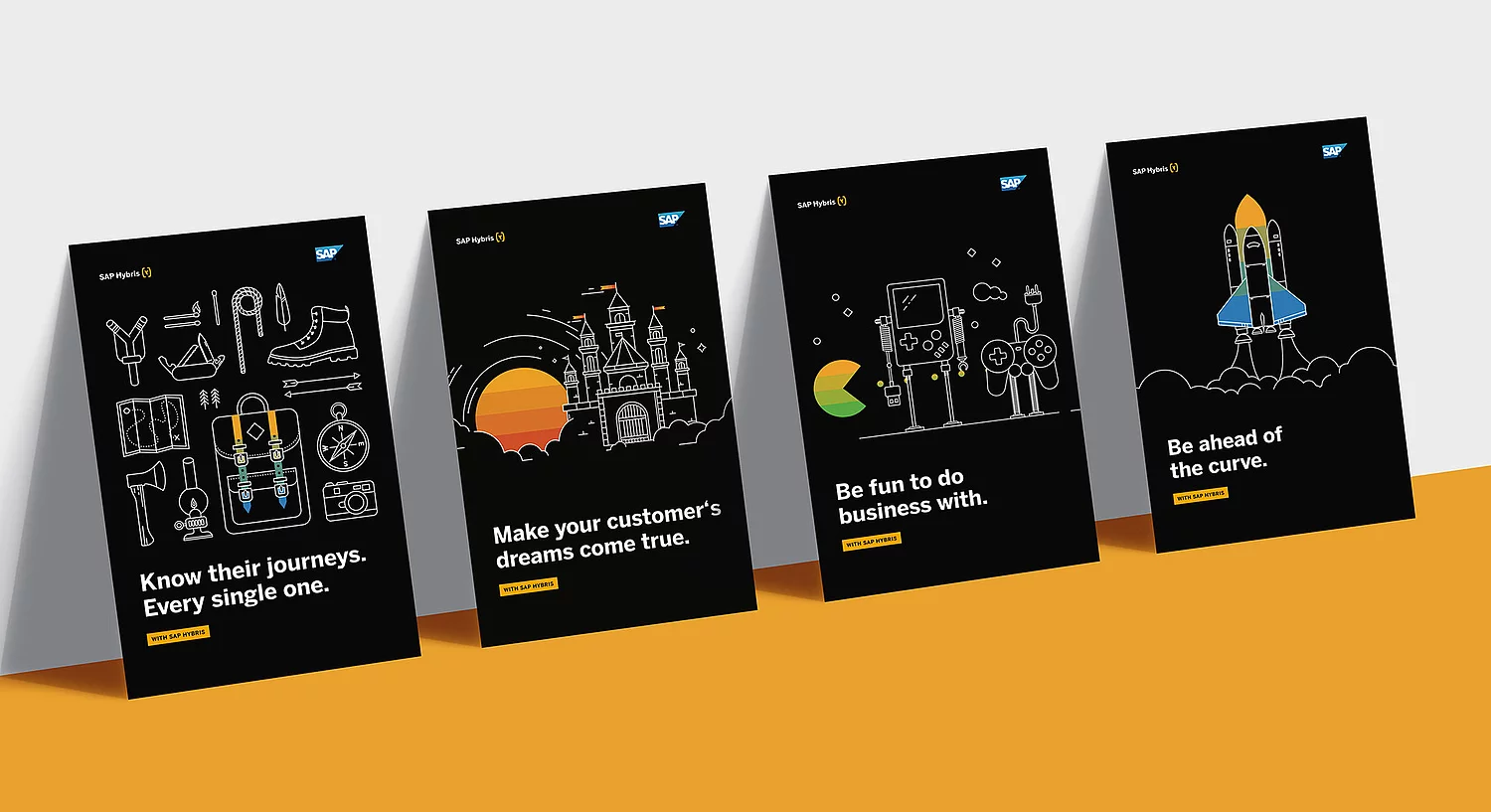 SAP hybris is omnipresent at industry events, where we help them make a fitting appearance. But what we particularly enjoy is the annual Global Summit. We use this to breathe new life into the brand and see it as a living object that does not shy away from further development without losing its essence. Here, we often pick up on current industry trends and topics to illustrate how a brand can remain relevant.